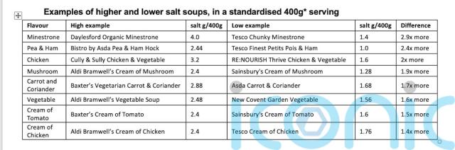 Sonia Pombo, head of impact and research at Action on Salt and Sugar, said: “Soup is often marketed as a healthy, everyday choice, but our findings show it can be a major source of hidden salt.