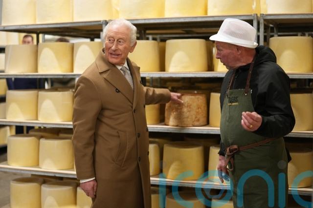 For his final visit of the day, the King sampled some cheese at a family business which had rebuilt after a devastating fire.