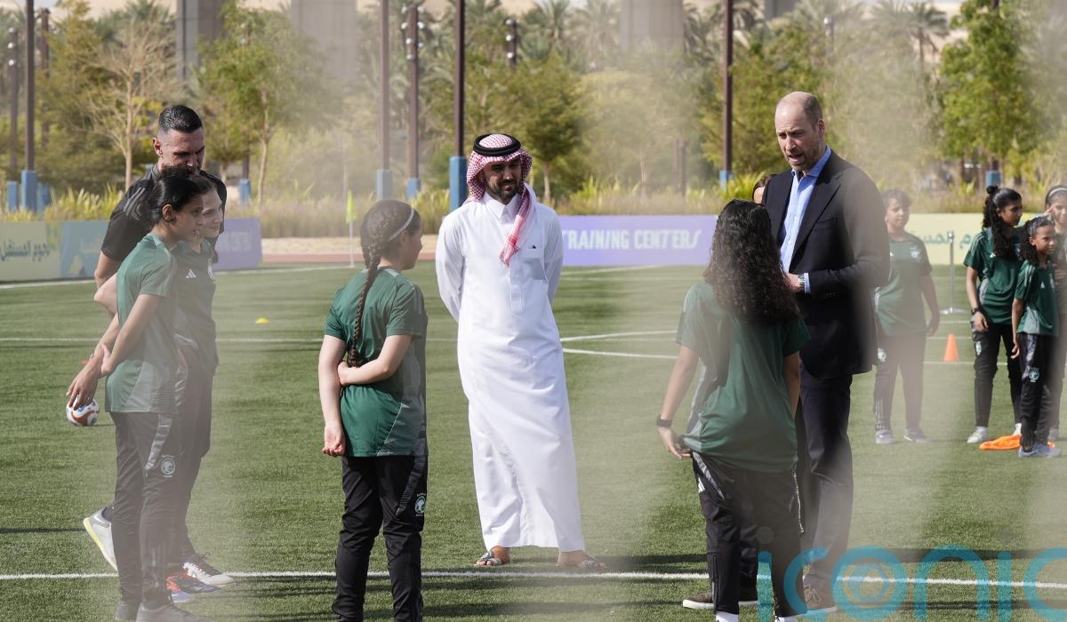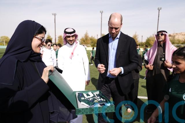 William was asked questions by the broadcast media after he watched talented schoolgirls honing their football skills at a sports ground in the Saudi Arabian capital Riyadh.