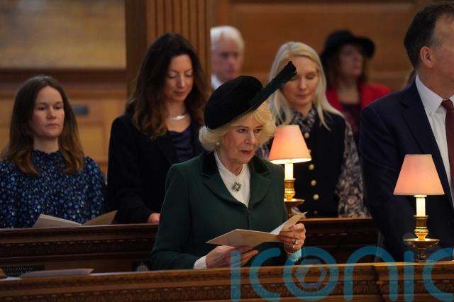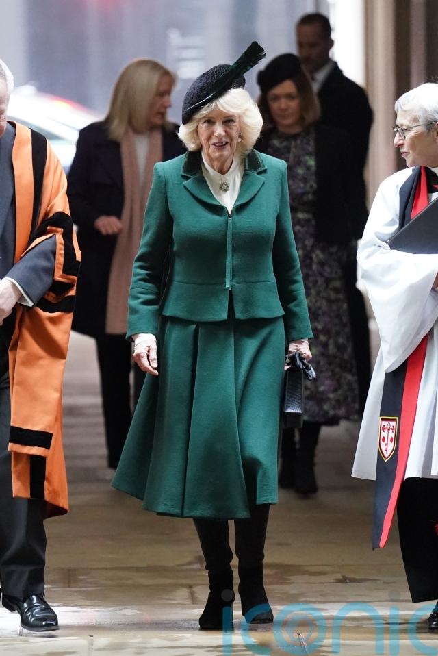 Wearing a dark green blazer and skirt with a feathered hat, the Queen joined the congregation for a service recognising the guild’s work, before greeting journalism students supported by the guild’s bursary.