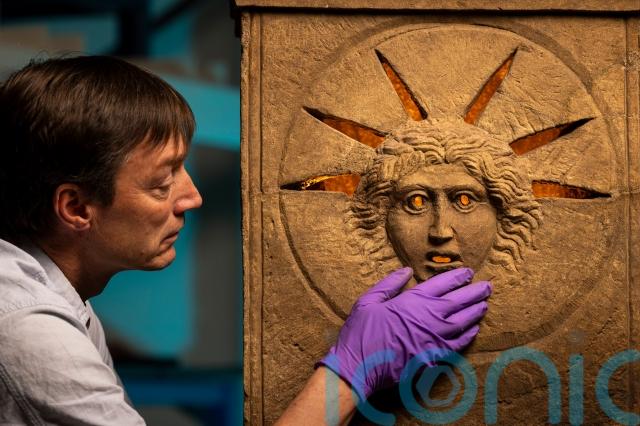 Curators said it would have been illuminated from behind so that in the low light of the temple, worshippers would have seen Sol’s eyes, mouth and the rays of his solar crown glowing.