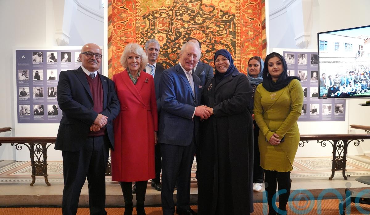 Charles and Camilla were given a tour of the exhibition by former politician and co-host of The Rest Is Politics podcast Rory Stewart, founding director of Turquoise Mountain, and his wife Shoshana, the charity’s president.