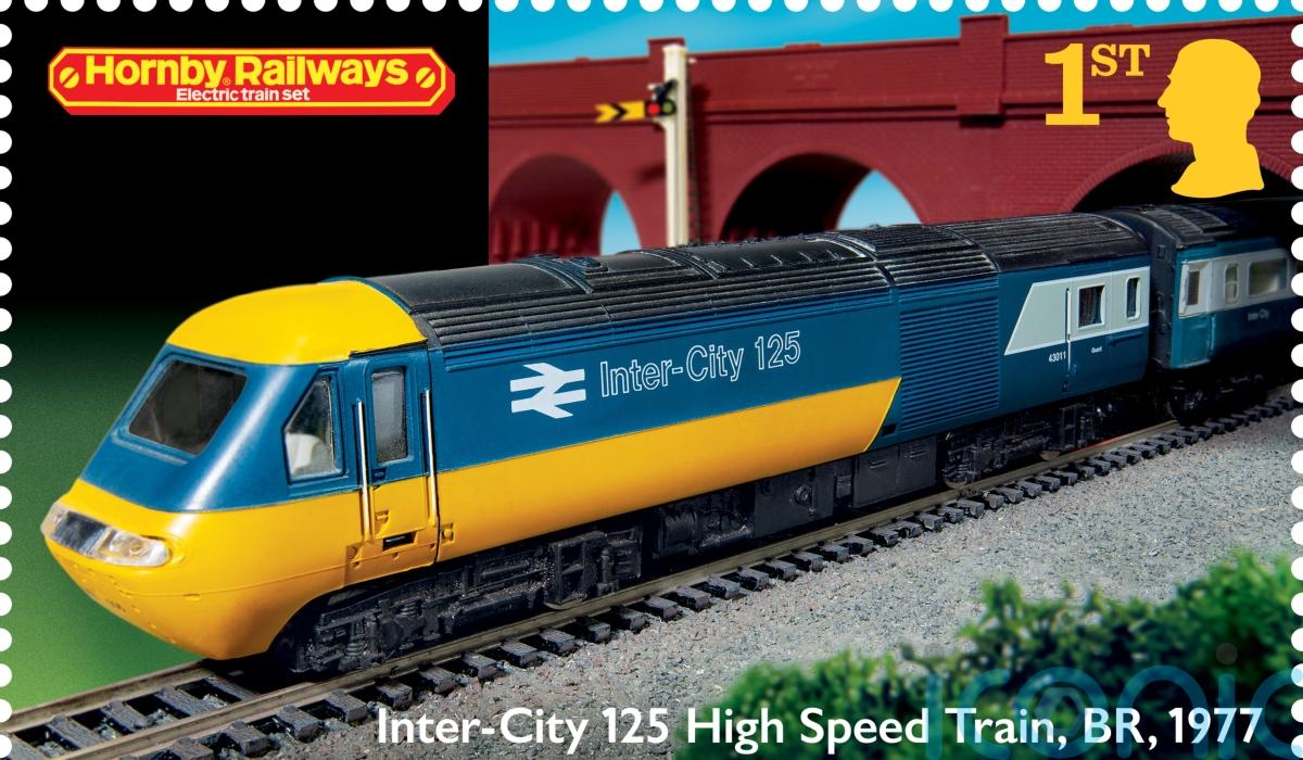 Each stamp features an exclusive photograph of a Hornby model, specially commissioned by Royal Mail, including an InterCity 125 High Speed Train, Bournemouth Belle Pullman cars and a 1920 No 1 locomotive.