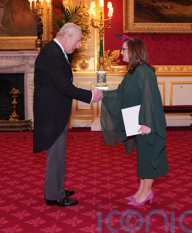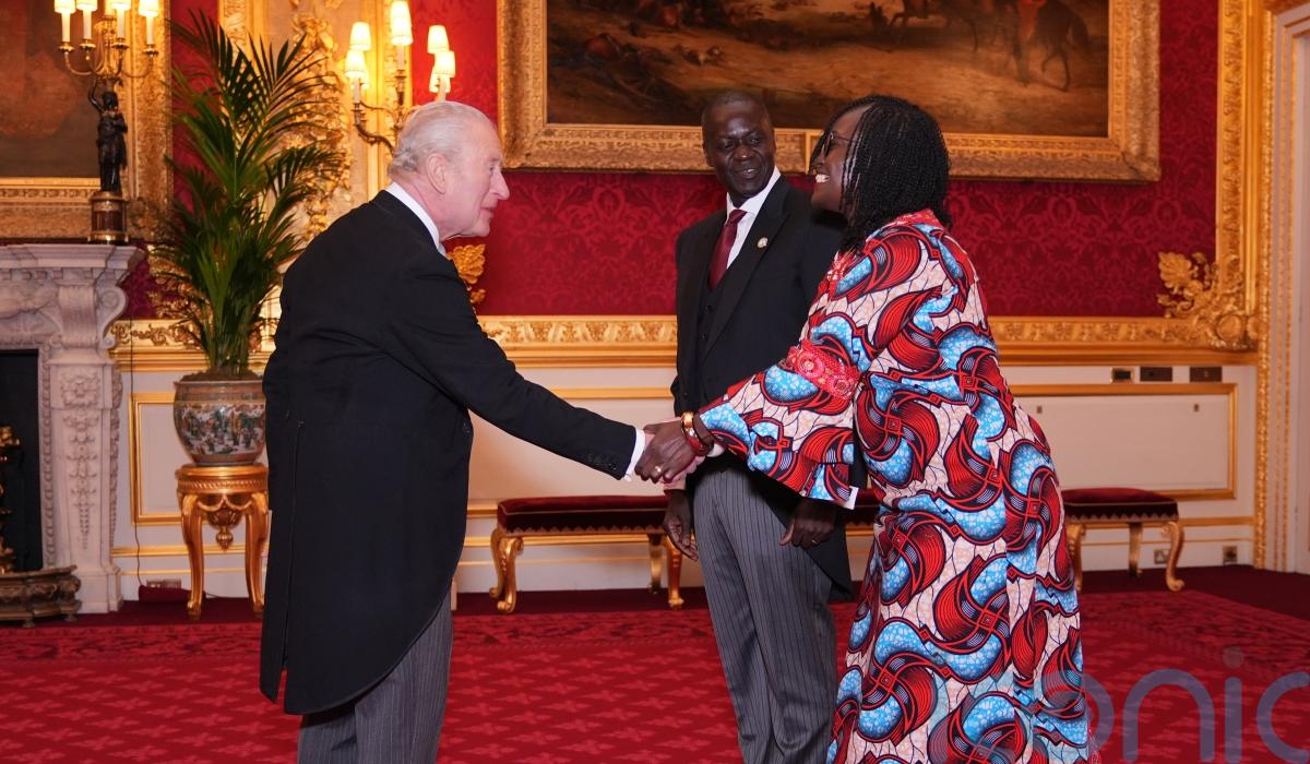 Dressed in a smart morning suit, Charles welcomed the Spanish ambassador Emma Aparici Vazquez de Parga, the ambassador of El Salvador Francisco Lima Mena and the Kenyan high commissioner Maurice Makoloo in the royal residence’s ornate red Throne Room.