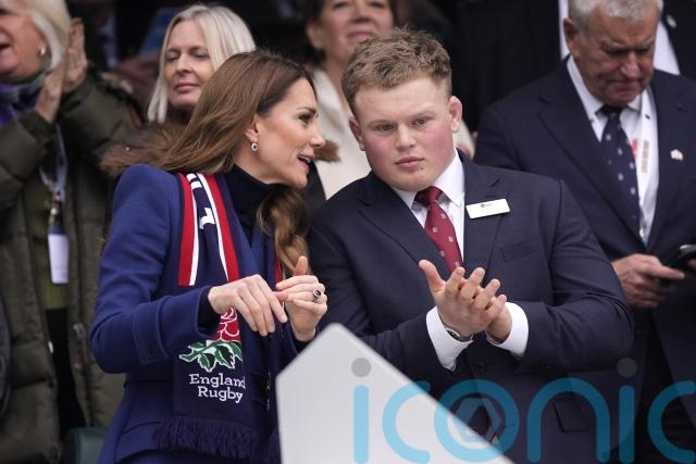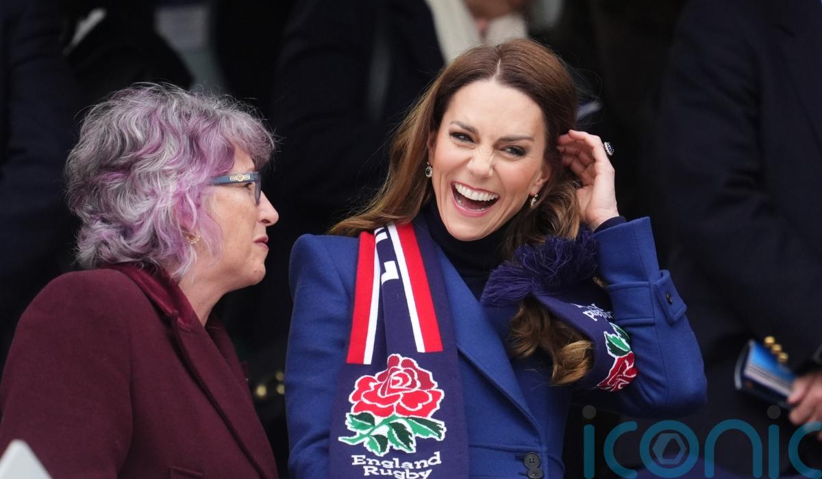 Kate, patron of the Rugby Football Union (RFU), donned an England Rugby scarf atop a dark blue coat to watch England take on Ireland in the Guinness Men’s Six Nations on Saturday.
