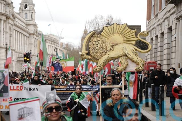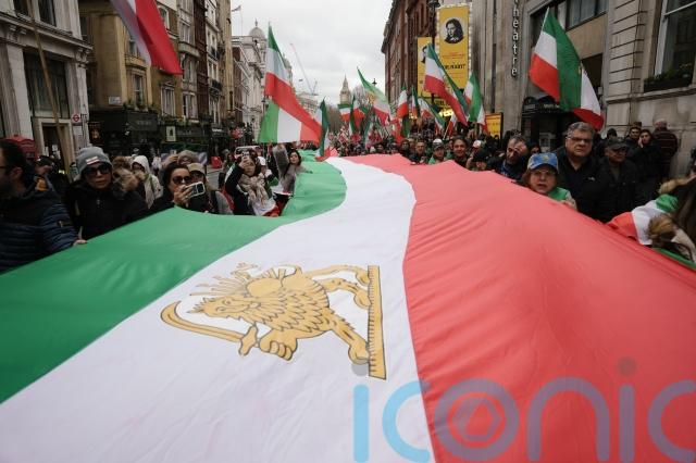 Around 1,500 protesters have marched through central London to call on the UK Government to close the Iranian embassy.