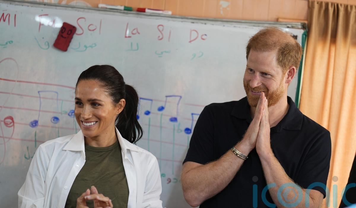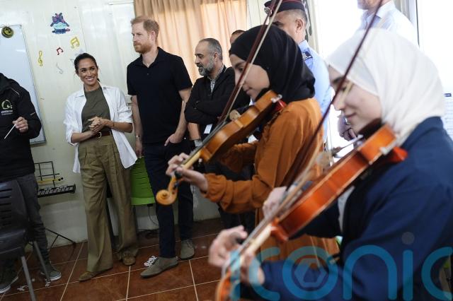 Conversations were conducted through an interpreter but when Harry asked the violinists if made friends through the lessons, 15-year-old Siham, a refugee who arrived in the country aged two, said “yes we’re friends” in perfect English and impressed the Sussexes by saying she was a black belt in the martial art taekwondo.