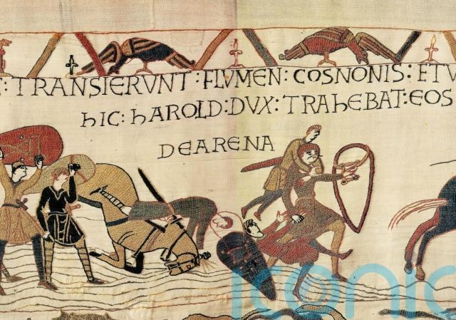 The tapestry depicts the 1066 Norman invasion and Battle Of Hastings, which saw William the Conqueror take the English throne from King Harold and become the first Norman king of England.
