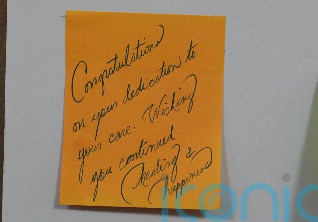 Harry’s message on a sticky note, left on a wall with others, read: “It’s ok to not be ok. Trust each other.