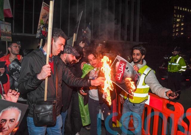The counter-protesters carried flags of Israel, Britain and the old Iranian flag.