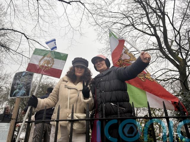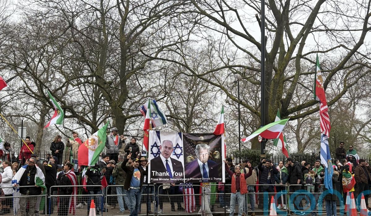 Around 200 demonstrators gathered outside the Iranian embassy in central London to show their support for the US and Israeli strikes on Iran.