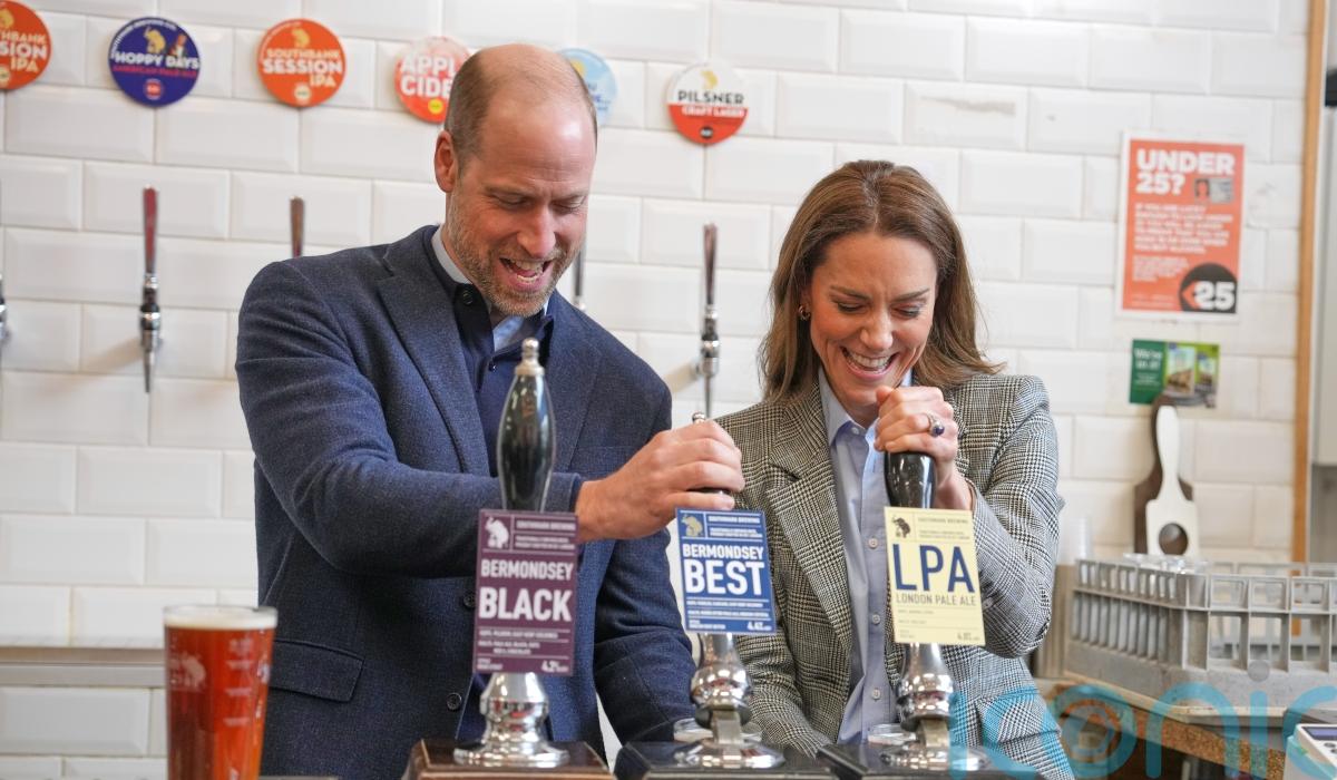 On Thursday William and Kate were invited to try beers and ciders at the Fabal Beerhall, and went behind the bar at the Southwark Brewing Company, on the Bermondsey Beer Mile – a well known route of independent breweries and taprooms in London Bridge in the south-east of the capital.