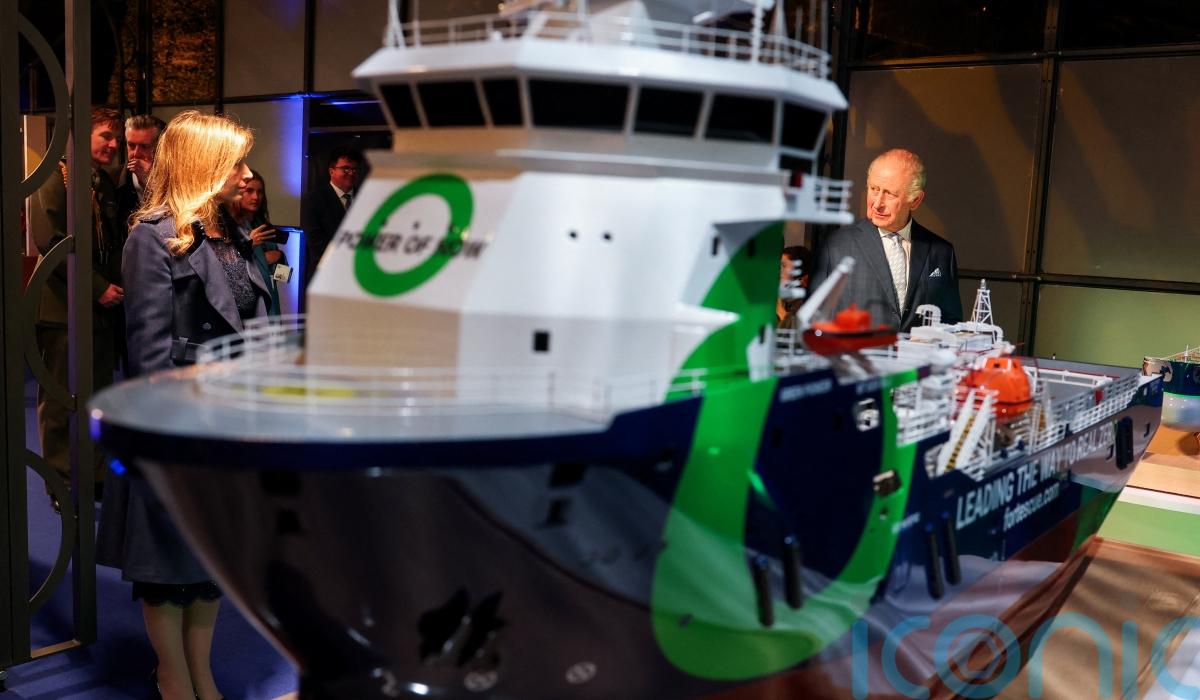 Charles was also shown a replica of the Blue Origin space shuttle as well as sustainable textiles, carbon capture models and energy-efficient building materials.