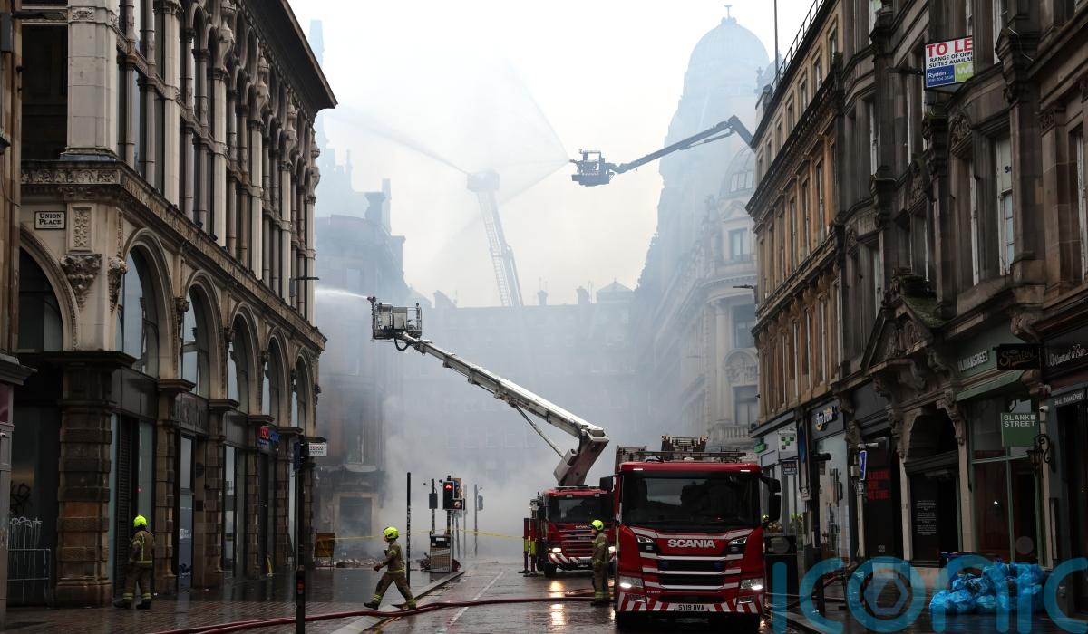 The fire began in a vape shop in Union Street and spread through the building and around the corner, with only the facade of the building at the junction with Gordon Street left standing.