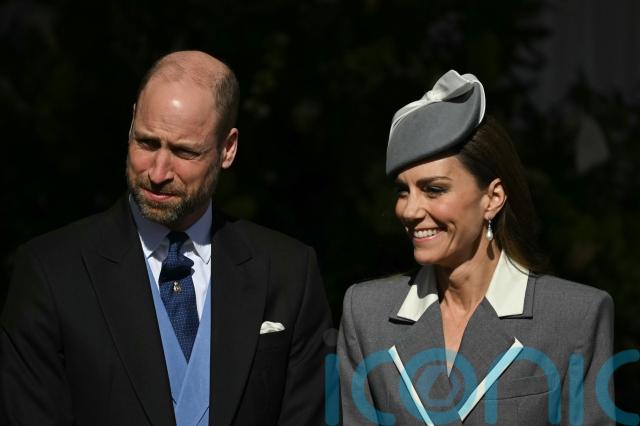 Kate matched her outfit with a grey Jane Taylor hat decorated with a white bow and also wore the late Diana, Princess of Wales’ earrings.