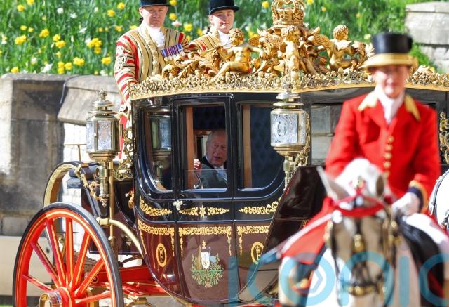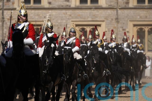 Ceremonial service personnel lined the procession route as the King and the president travelled in the Australian State Coach through the streets of the Berkshire town to the castle’s quadrangle, led by a Sovereign’s Escort from the Household Cavalry Mounted Regiment.