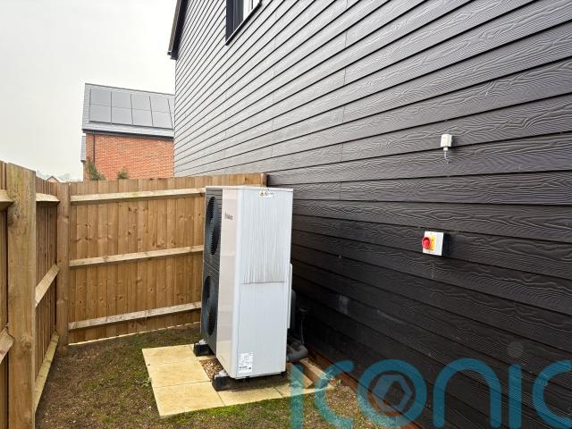 Roofs glint with integrated solar panels, heat pumps are placed discreetly around the side of houses or behind garages, and the inside elements of the heating system and batteries are tucked in landing and hallway cupboards with room spare to hang coats.