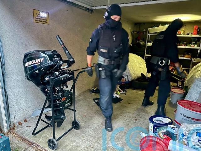 Boats and engines, as well as petrol cans, pumps and life jackets, were seized in raids on warehouses in the North Rhine-Westphalia region said to be linked to a people smuggling gang.
