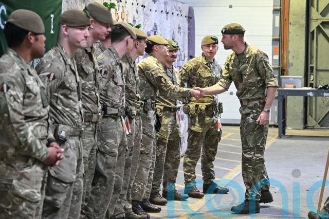 Wearing a camouflage uniform and the regimental beret, the prince met soldiers from the 1st Battalion who returned last December from a six-month deployment to Estonia as part of the UK’s contribution to Nato forces.