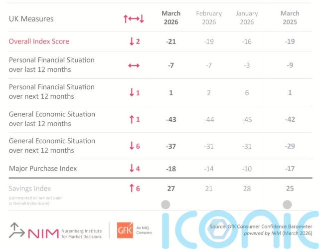 GfK’s long-running consumer confidence index dropped two points to minus 21 this month amid expectations of further sharp price rises.