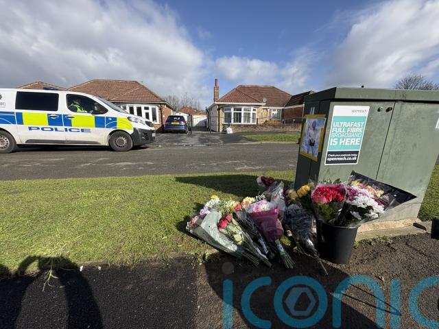 Flowers were laid in the quiet street of bungalows and scenes-of-crime officers in white protective clothing were seen going into one of the homes on Monday.