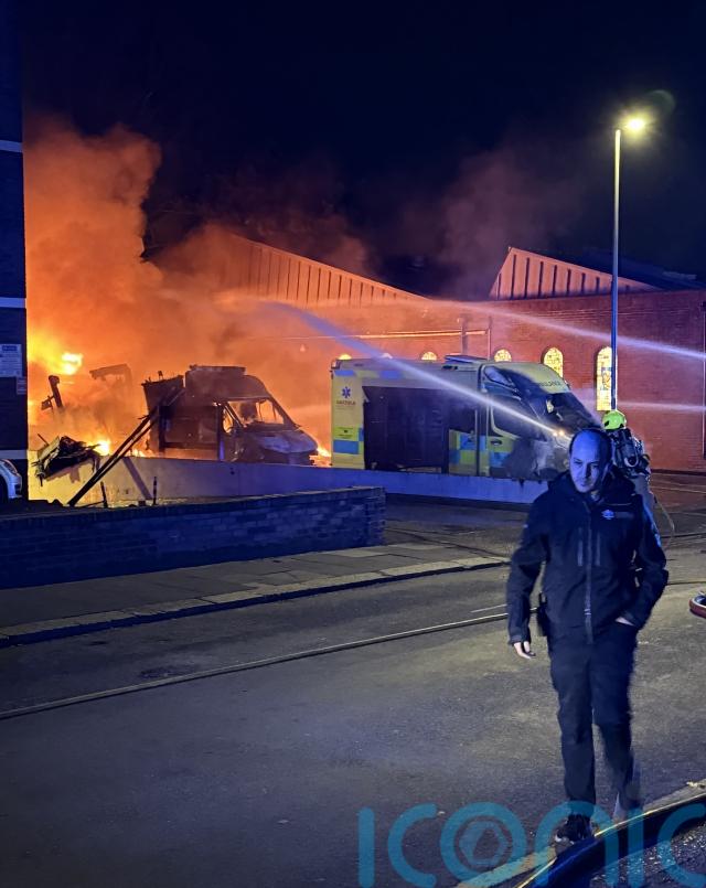 CCTV footage showed three hooded figures apparently pouring accelerant on the ambulances and setting them on fire.