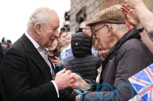 Hours before Charles and Camilla’s arrival, graffiti saying “Not our King” was cleaned off a wall in the grounds of the building, which is the UK’s smallest ancient cathedral.