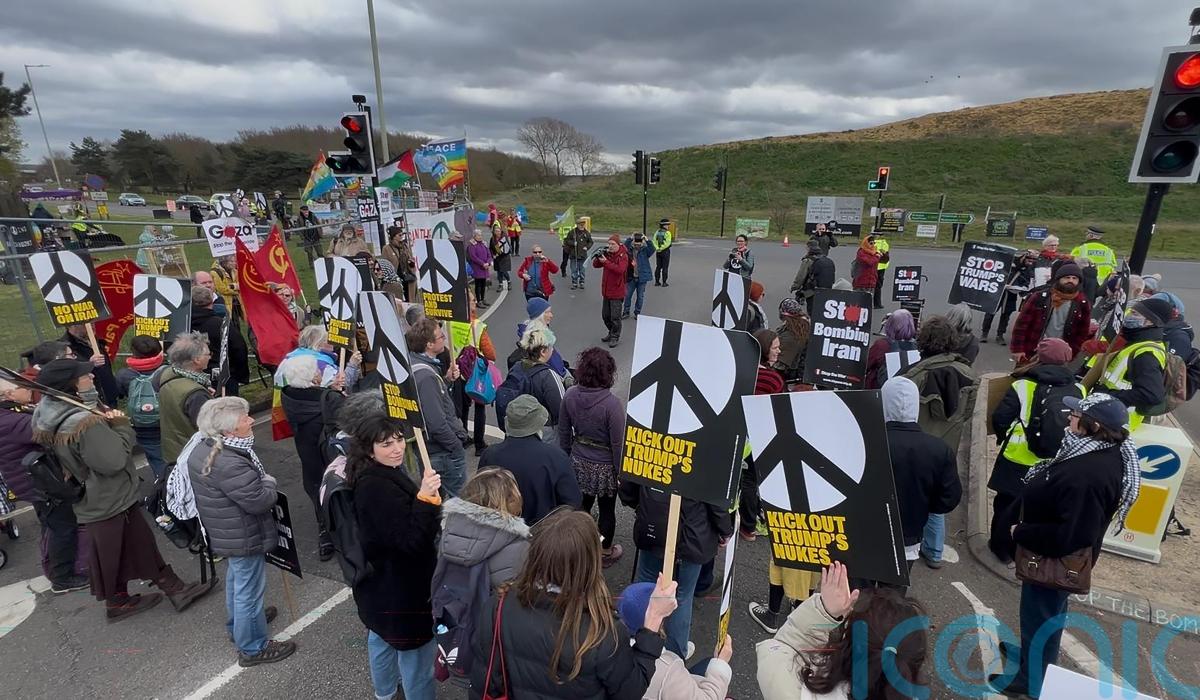 The peace protest follows reports from some media outlets that a US fighter jet shot down in Iran on April 3 had taken off from the Lakenheath base.