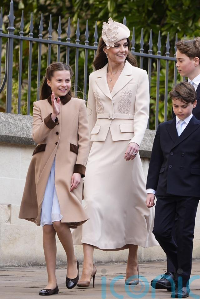 The Waleses and their children all waved to the crowds after the service to cries of “Happy Easter” from those in attendance.