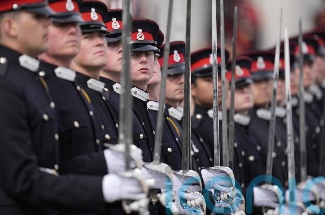 The Sovereign’s Parade at Royal Military Academy Sandhurst in Surrey marks the completion of 44 weeks of intensive training for the Officer Cadets.