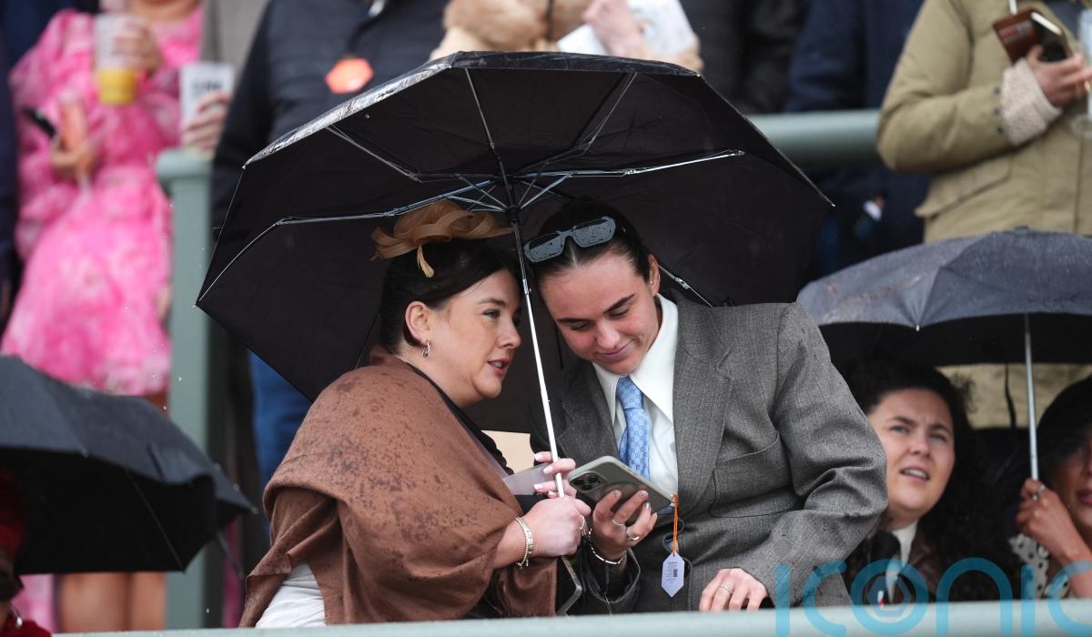The sun was shining as punters arrived at the Merseyside racecourse on Saturday morning, but heavy rain and hailstones saw people seeking shelter as the third race of the day got under way just before 2pm.