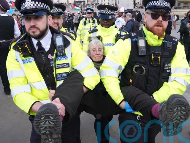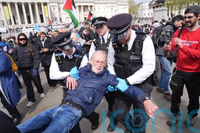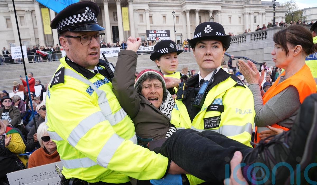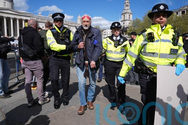 Around 100 police officers were also present at the base of Trafalgar Square and approached the protest in lines of pairs before arrests were made.