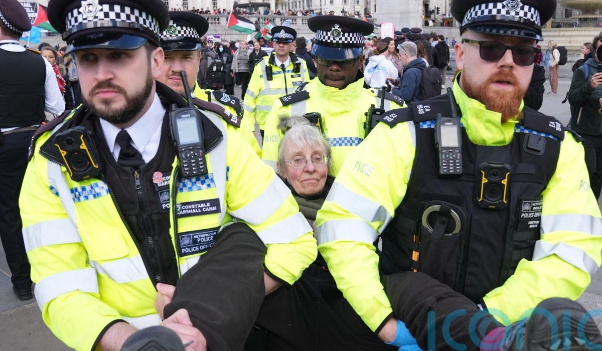 The force said 523 people aged between 18 and 87 were arrested for showing support for a proscribed organisation during the demonstration at Trafalgar Square.