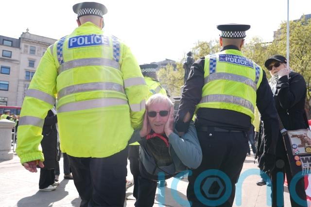 Police officers carried people away from the demonstration as they made arrests – including Mr Del Naja, who was filmed being lifted off the ground by three police officers.