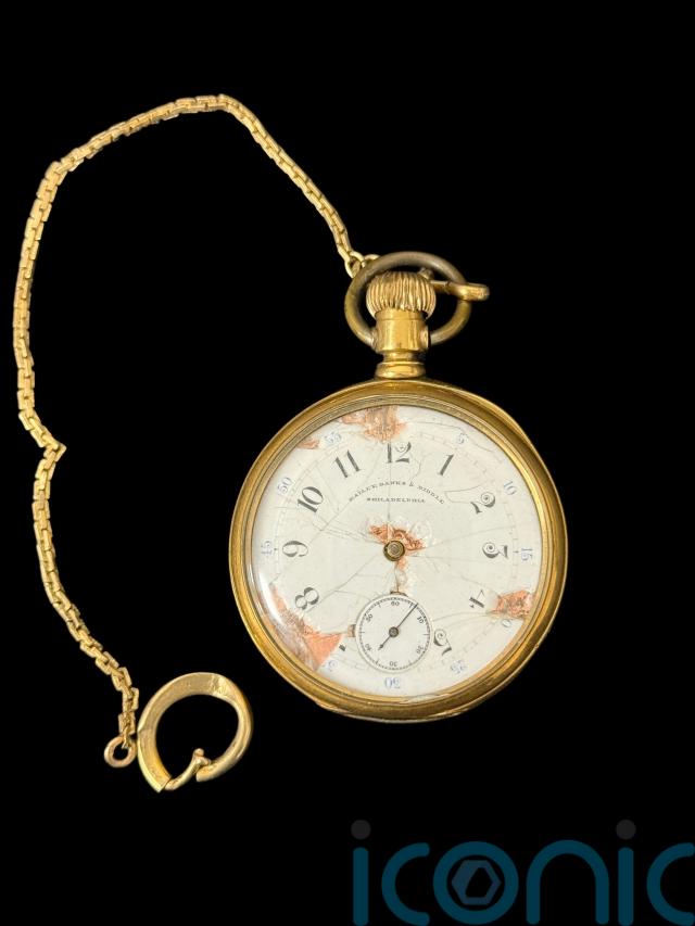 The 18-carat gold case pocket watch up for auction was owned by first class passenger, Frederick Sutton, 61.