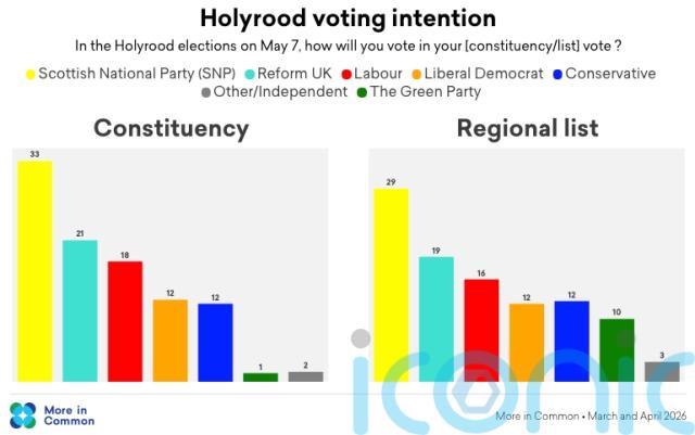 The survey, carried out for More in Common and seen exclusively by the Press Association, found the SNP will continue to be the largest party, but John Swinney’s party and the Greens – the other independence-supporting party – would fall one seat short of a majority.
