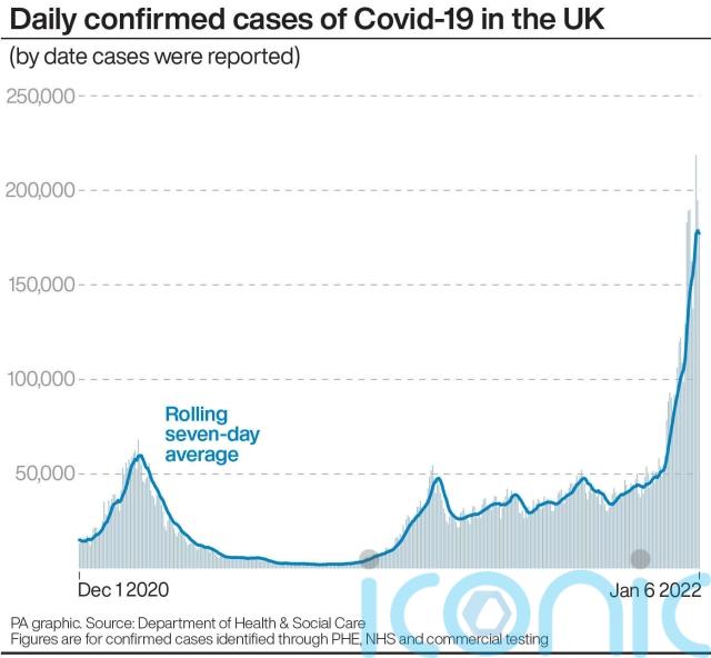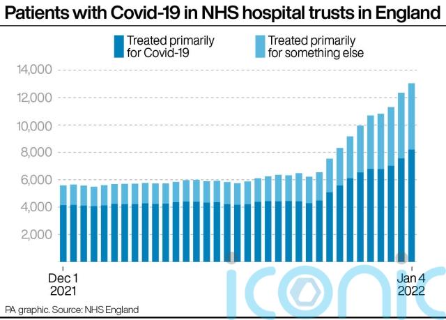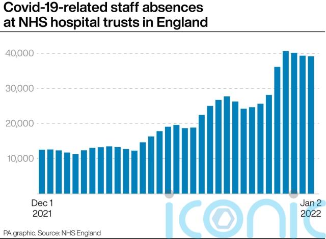 Meanwhile, NHS England data shows 39,142 NHS staff at hospital trusts in England were absent for Covid-19 reasons on January 2, up 59% on the previous week (24,632) and more than three times the number at the start of December (12,508).