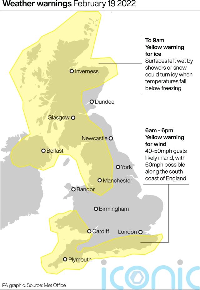 Wind speeds are expected to get up to 60mph through the Bristol Channel and along the south coast of England, and around 50mph inland.