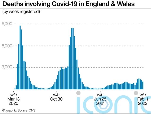 The figures suggest Covid-19 deaths are now on a downwards trend, following the rise in December and early January that was driven by the Omicron variant of the virus.