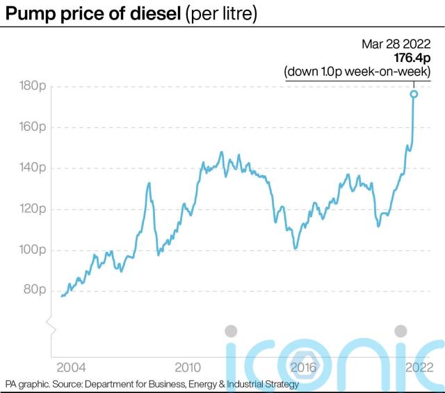 Figures from data firm Experian Catalist show the average price per litre on Tuesday was 163.5p, compared with 167.3p on March 22.