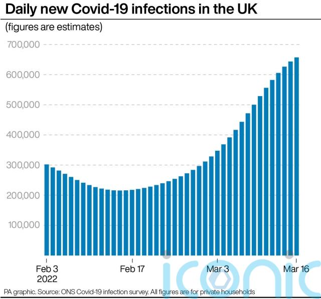 Infections are estimated to have climbed as high as 657,300 every day by March 16, according to new modelling published by the Office for National Statistics (ONS).
