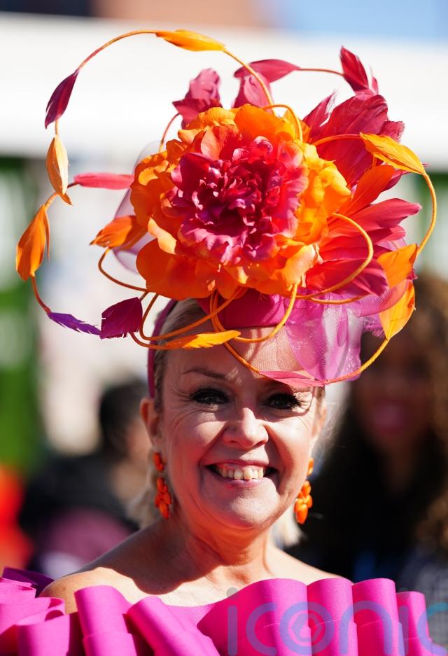 Former Coronation Street actress Helen Flanagan was among the racegoers, wearing a brown dress and pink fascinator.