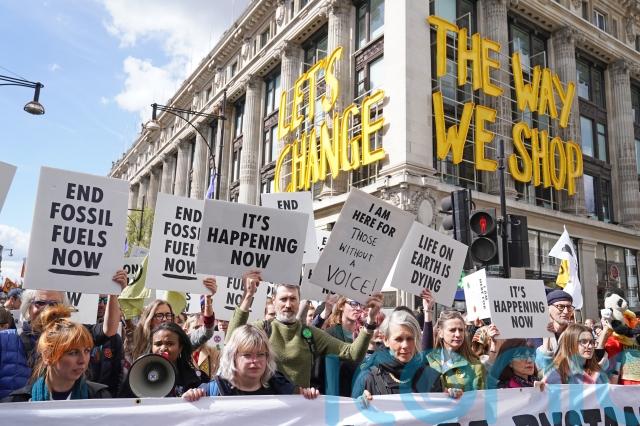 Extinction Rebellion climate activists marched through central London on Saturday and staged sit-down protests at several landmarks to call for an end to investment in fossil fuels.