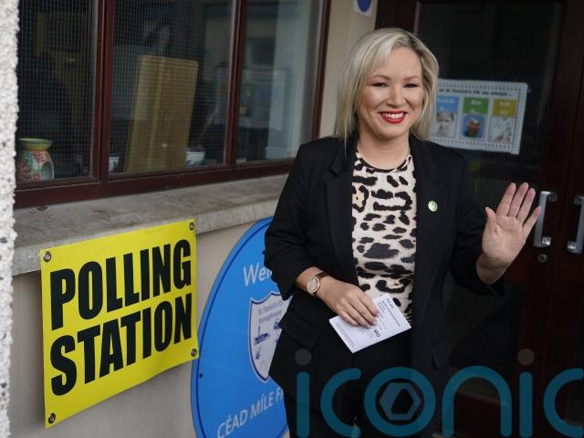 The party’s vice-president Michelle O’Neill filled out her ballot paper in St Patrick’s primary school in her home village of Clonoe, Co Tyrone, accompanied by party colleague Linda Dillon.