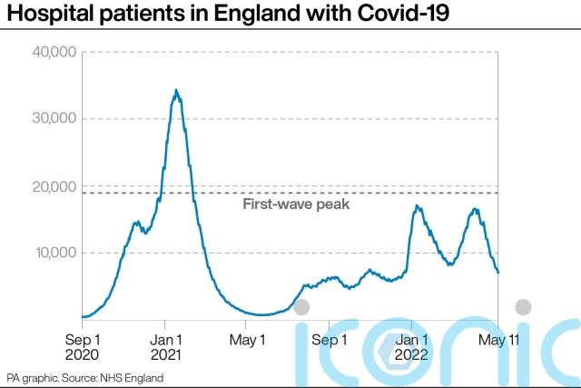 A total of 7,034 patients were in hospital as of 8am on May 11, down 21% week-on-week, according to NHS England.