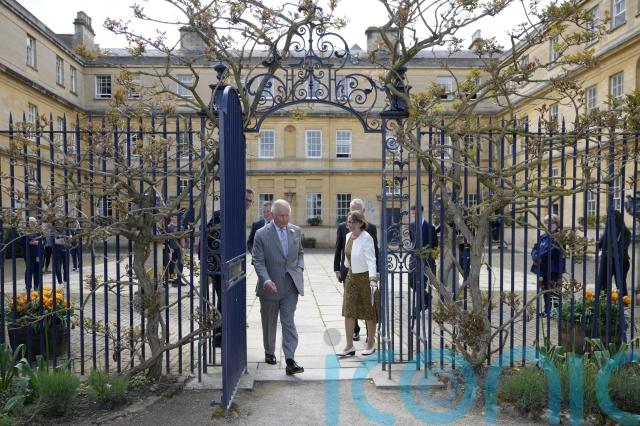 The prince also met staff and students who had lined up along one of Trinity’s lawns, one of whom was carrying a croquet mallet and balancing sunglasses on top of a straw hat.