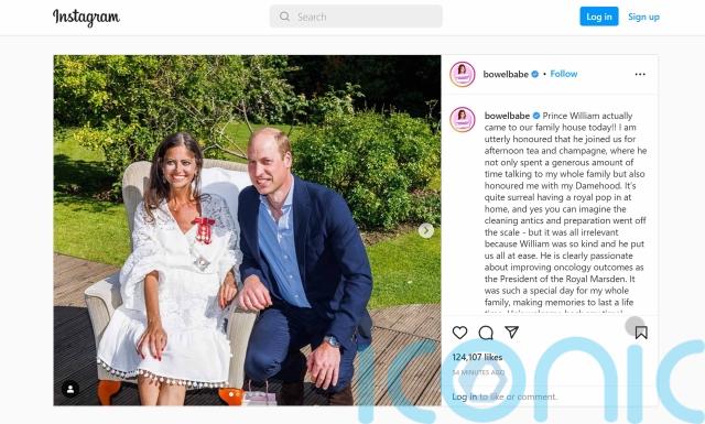 The duke visited the 40-year-old, known online as Bowel Babe, at her family home in Surrey to hand over the honour for her “tireless campaigning” to raise awareness of bowel cancer.