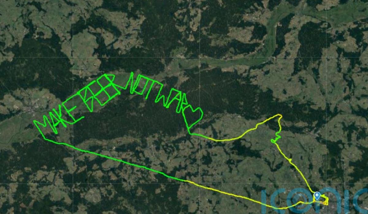 A light aircraft in Poland has drawn the words “make beer not war” using its flight path.