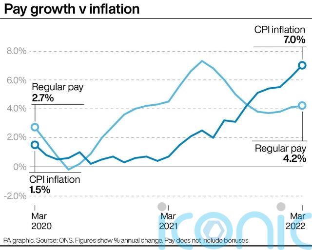 The Office for National statistics recorded inflation at 7% in March and on Wednesday it is expected to unveil a figure of 8% for April.