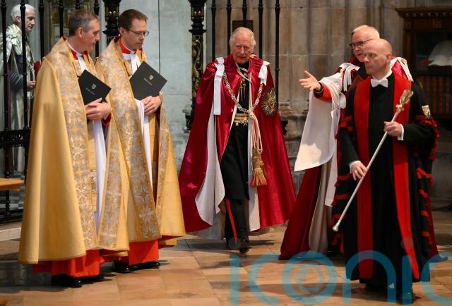 Charles, wearing ceremonial scarlet robes as Great Master of the Order, was present as the group took an oath and drew swords in the Henry VII chapel.